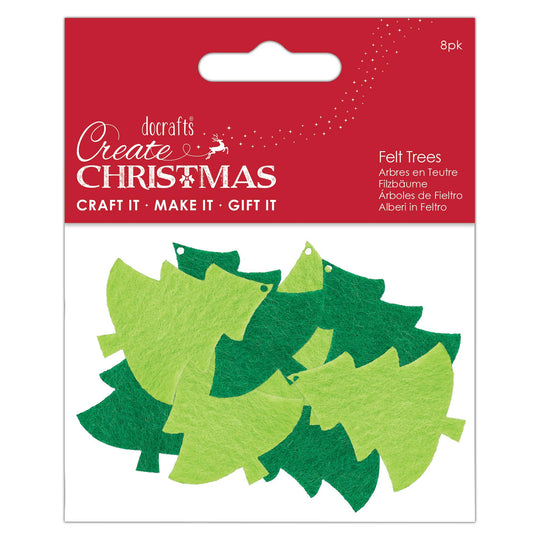 Create Christmas Felt Trees, Green, Pack of 8, Craft Supplies for Home Christmas Craft and Craft Projects, Ideal for Festive Crafts for Kids and Adults