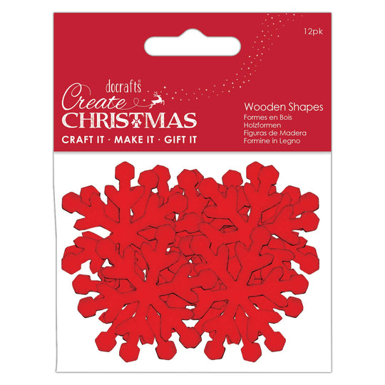 Create Christmas Wooden Shapes, Snowflakes, Red, Pack of 12, Suitable for Home, Wood Paint, Wooden Toys and Card Craft, Ideal for Christmas Decorations and Card Making Supplies