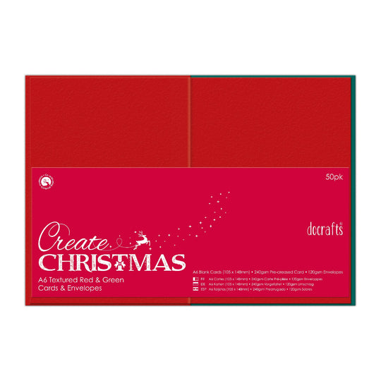 Create Christmas Cards/Envelopes Textured, Pack of 50, 240gsm, Red & Green, A6, Card Making Set for Christmas Cards, and Festive Card Making, Add Christmas Craft Decorations at Home