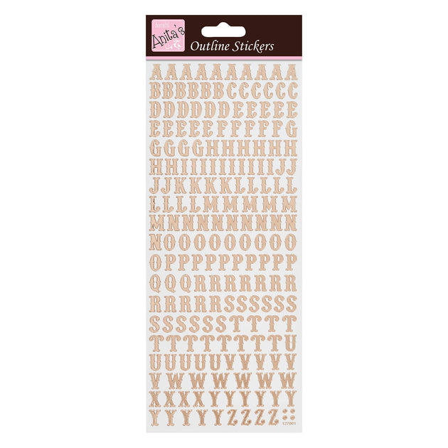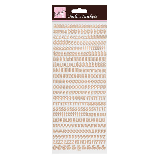 Anita's Outline Stickers, Alphabet, Rose Gold on White, For Scrapbooking, Card Making, Kids Play, Homework, Art, Craft, Embelish, Decorative, Paper, Card, Glass, Metal, Plastic, Foam