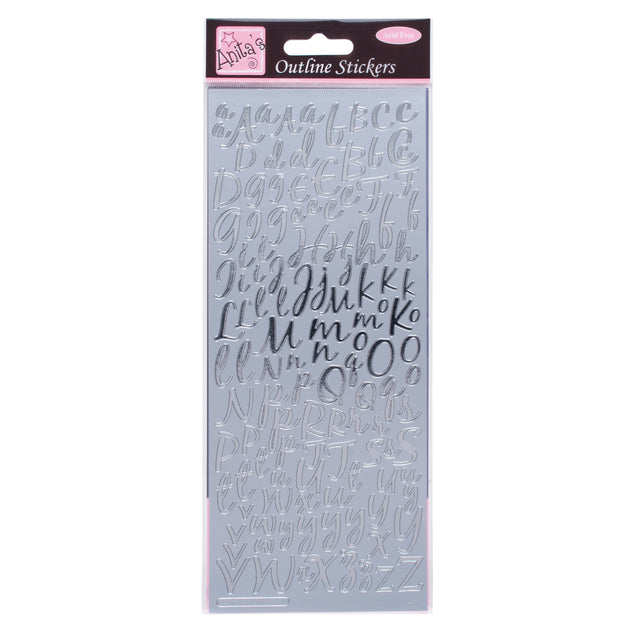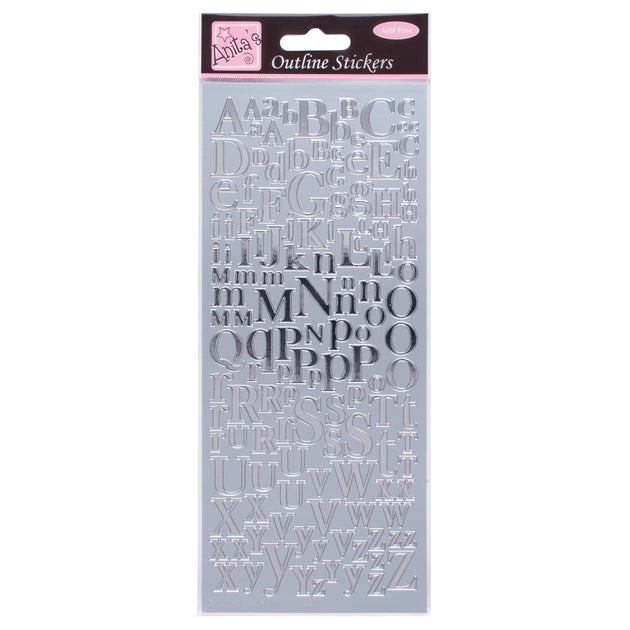 Anita's Outline Stickers, Modern Alphabet, Silver, For Scrapbooking, Card Making, Kids Play, Homework, Art, Craft, Embelish, Decorative, Paper, Card, Glass, Metal, Plastic, Foam