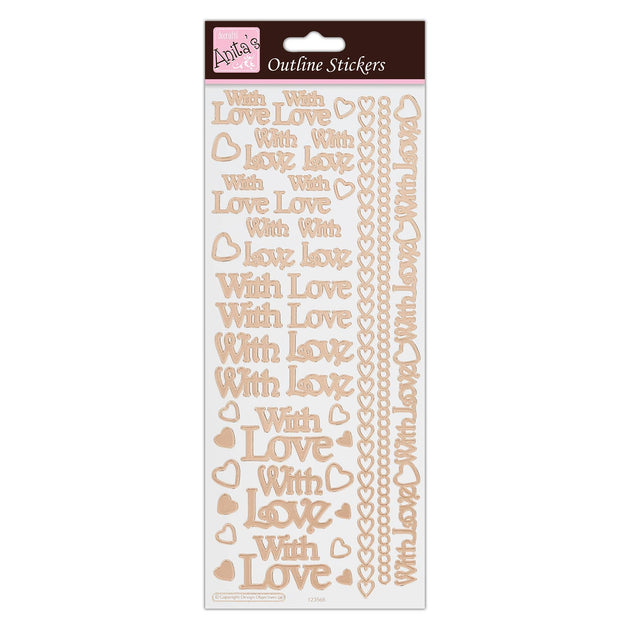Anita's Outline Stickers, With Love, Rose Gold on White, For Scrapbooking, Card Making, Kids Play, Homework, Art, Craft, Embelish, Decorative, Paper, Card, Glass, Metal, Plastic, Foam