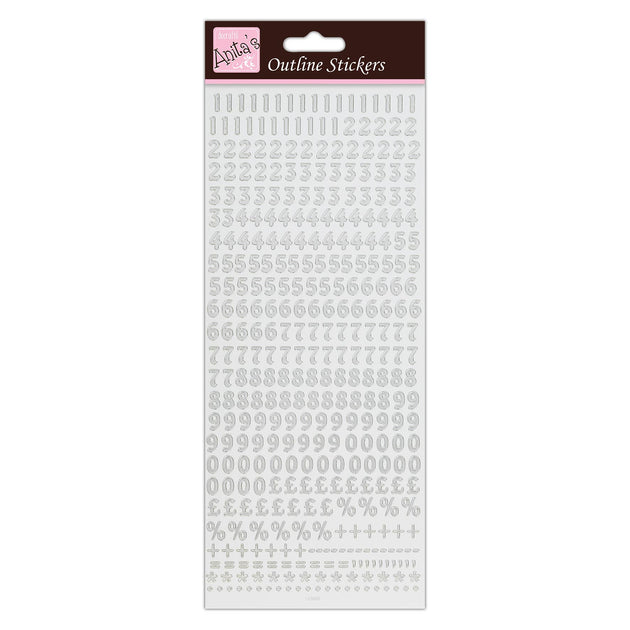 Anita's Outline Stickers, Small Numbers, Silver on White, For Scrapbooking, Card Making, Kids Play, Homework, Art, Craft, Embelish, Decorative, Paper, Card, Glass, Metal, Plastic, Foam