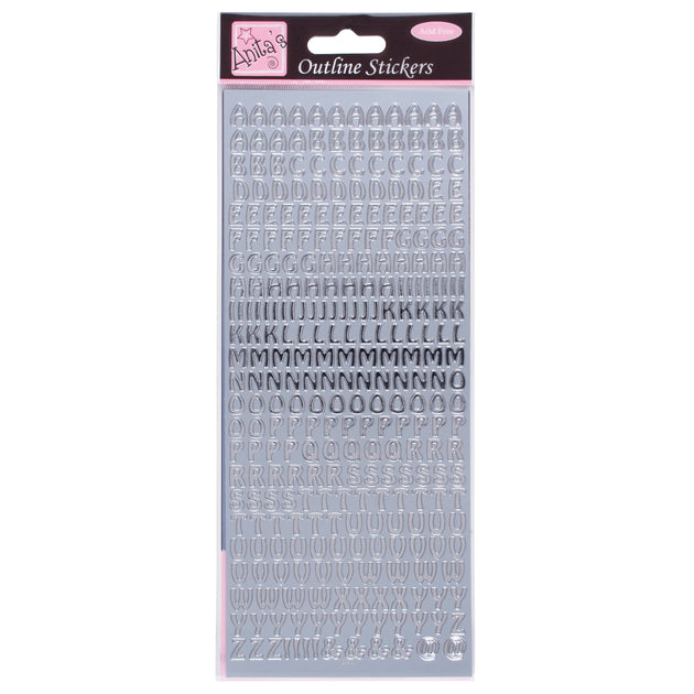 Anita's Outline Stickers, Capital Letters, Silver, For Scrapbooking, Card Making, Kids Play, Homework, Art, Craft, Embelish, Decorative, Paper, Card, Glass, Metal, Plastic, Foam