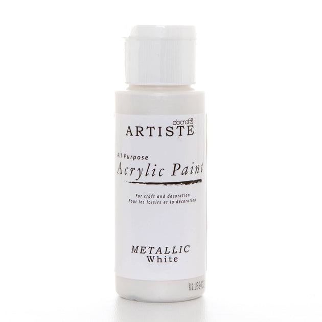 Artiste Acrylic Paint 59ml 2Oz Metallic White, Quick-Drying Professional Art, Craft And Hobby Artists Paint, Vibrant Colour, Water-Based Paints Cover All Surfaces With Ease, Ideal For Travel Artists