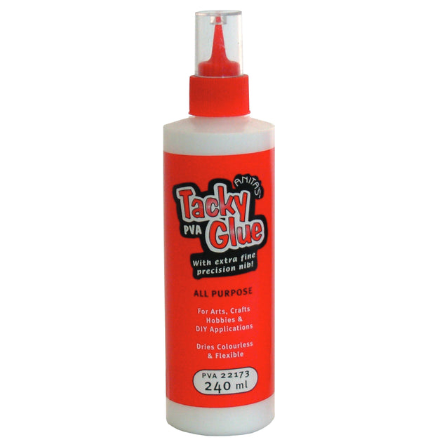 Anita's Tacky Poly Vinyl, PVA Craft Glue, 240ml, Ideal For Paper Crafting, All-Purpose Adhesive With Strong Tack, For Wood, Paper, Card, Leather, Foam, Fabric, Use For Making Slime, Dries Clear