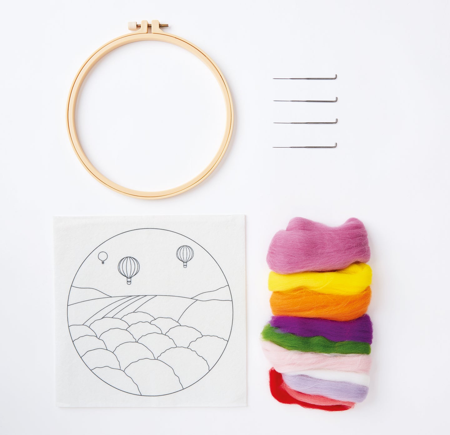 CONTENTS Felt crafty kit includes 4 x needles, plastic hoop, template and coloured acrylic wool. Creates a uniquely fuzzy finish