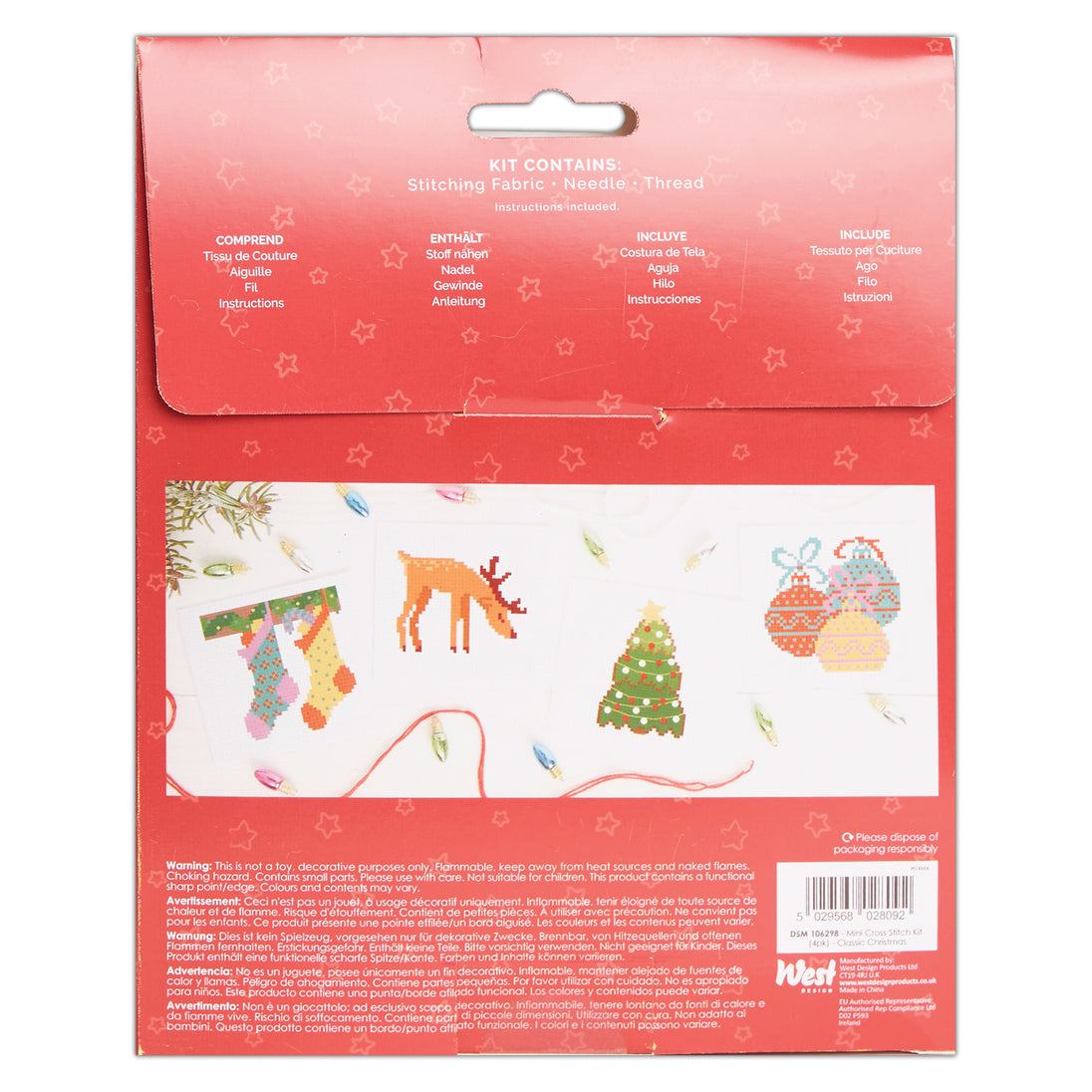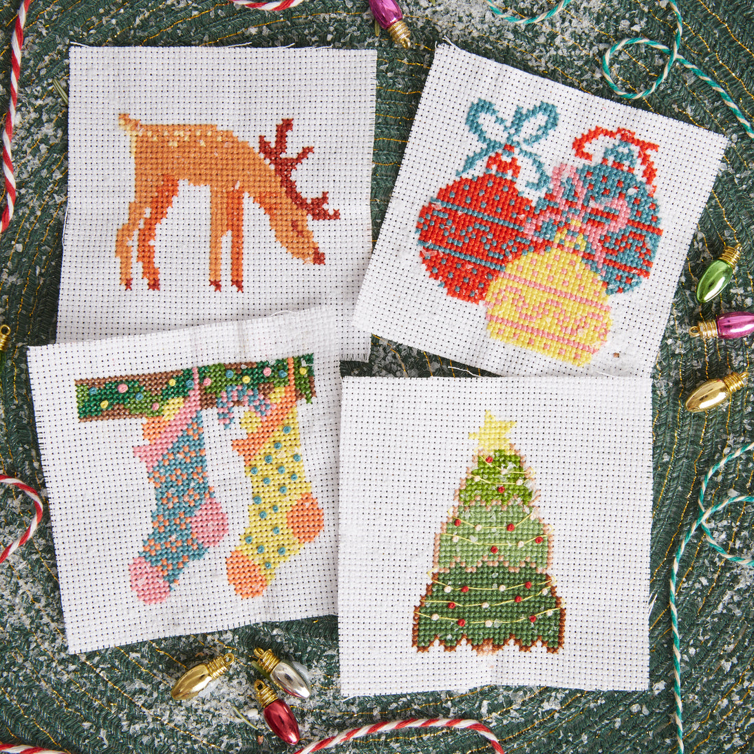 Simply Make Cross Stitch Kit, Classic Christmas 4 Pack, Hoop Embroidery, Thread, Fabric & Needle, Perfect For Beginners, Starter Cross Stitch Craft Kit, Great Gift, Craft Hobbyists, Festive Home Décor