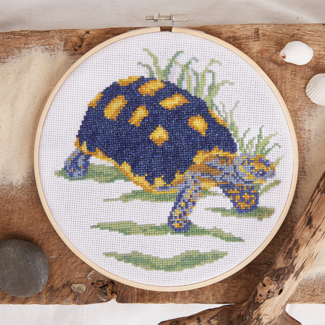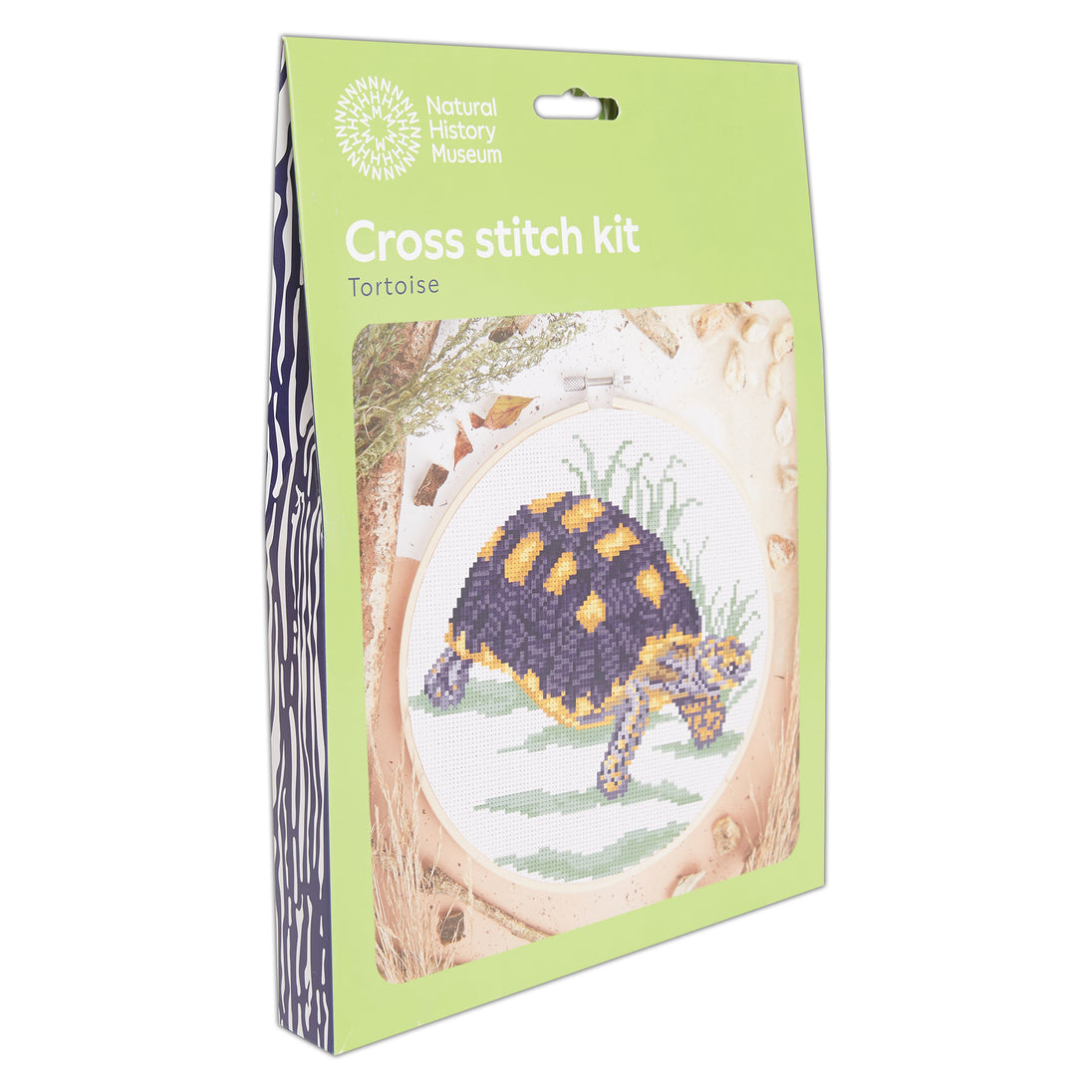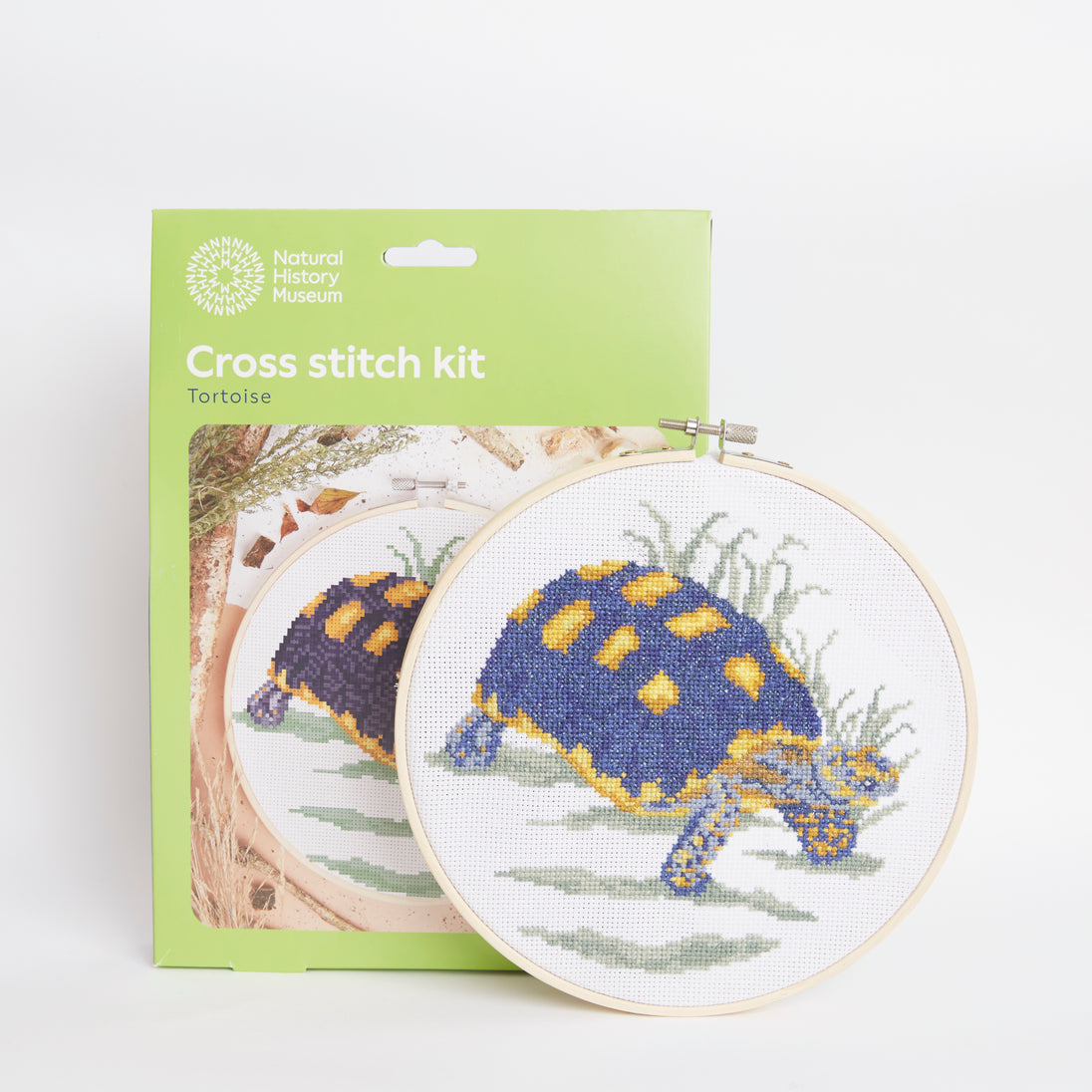 NHM Natural History Museum Cross Stitch Kit, Tortoise Design, 14cm Embroidery Kits For Adults, Cross Stitch Kits For Adults Beginners, Gift Idea, With Embroidery Patterns, Embroidery Set