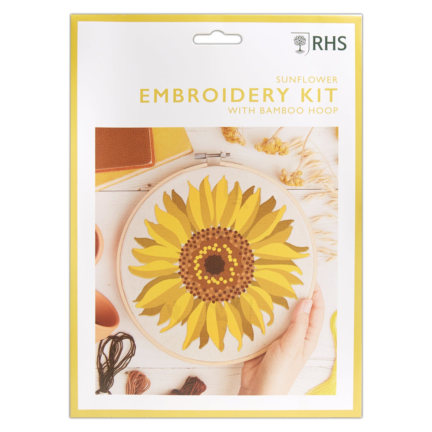 RHS The Royal Horticultural Society Embroidery Hoop Decoration Kit, Sunflower, 8", 21cm, Embroidery Kits For Adults & Cross Stitch Kits for Adults Beginners, Gift Idea, With Embroidery Pattern