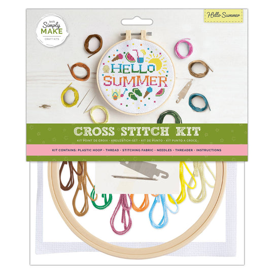 Simply Make Adults 'Hello Summer' Embroidery Craft Cross-Stitch Kit, Makes The Perfect Present For Any Creativity And Hobby Enthusiast, Ideal For Beginners First Starter Sets, Make Your Own DIY Crafts