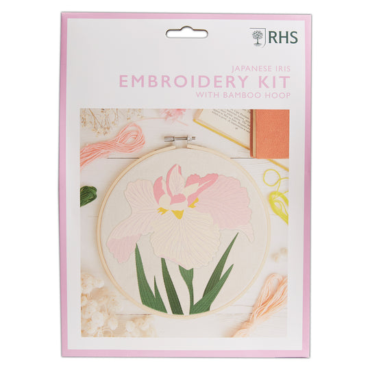 RHS The Royal Horticultural Society Embroidery Hoop Decoration Kit, Japanese Iris, 8", 21cm, Embroidery Kits For Adults & Cross Stitch Kits for Adults Beginners, Gift Idea, With Embroidery Pattern