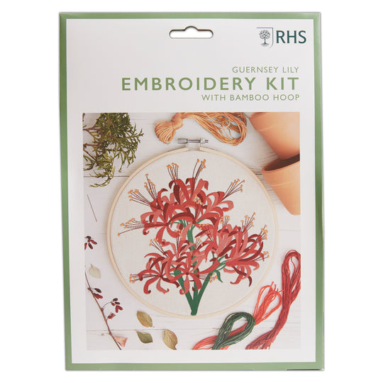 RHS The Royal Horticultural Society Embroidery Hoop Decoration Kit, Guernsey Lily, 8", 21cm, Embroidery Kits For Adults & Cross Stitch Kits for Adults Beginners, Gift Idea, With Embroidery Pattern