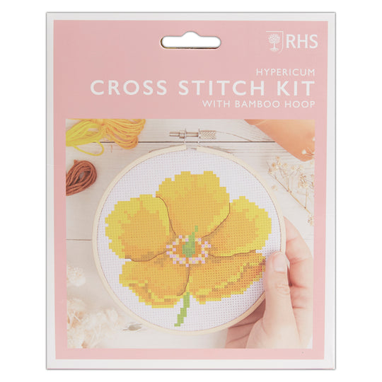 RHS The Royal Horticultural Society Cross Stitch Kit, Hypericum Design, 14cm Embroidery Kits For Adults, Cross Stitch Kits For Adults Beginners, Gift Idea, With Embroidery Patterns, Embroidery Set