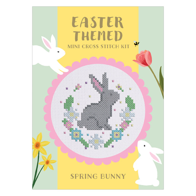 Simply Make Cross Stitch Kit - Spring Bunny Design for Kids and Adults, Including Hoop, Embroidery Thread, Fabric and Needle - Perfect for Adult Crafts and Beginners - Starter Cross Stitch Craft Kit