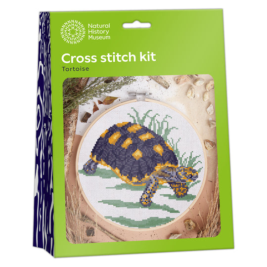 NHM Natural History Museum Cross Stitch Kit, Tortoise Design, 14cm Embroidery Kits For Adults, Cross Stitch Kits For Adults Beginners, Gift Idea, With Embroidery Patterns, Embroidery Set