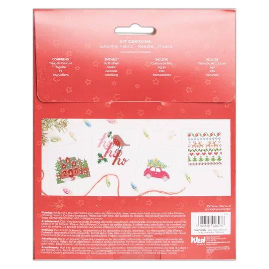 Simply Make Cross Stitch Kit Home for Christmas 4 Pack, Hoop Embroidery, Thread, Fabric & Needle, Perfect For Beginners, Starter Cross Stitch Craft Kit, Great Gift, Craft Hobbyists, Festive Home Décor