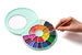 USE Unique Snail Design. Clever round layout keeps colours easy to reach, with the lid doubling as a handy mixing palette. Makes painting easier & fun. Includes round synthetic paint brush. Semi-moist formula is made with pigments & gum arabic