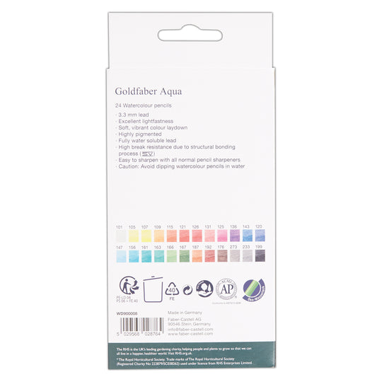 Faber-Castell Creative Studio Goldfaber Aqua Watercolour Pencil Set, RHS Special Edition, Set of 24 Pencils, For Art, Craft, Drawing, Sketching, Home, School, University, Colouring