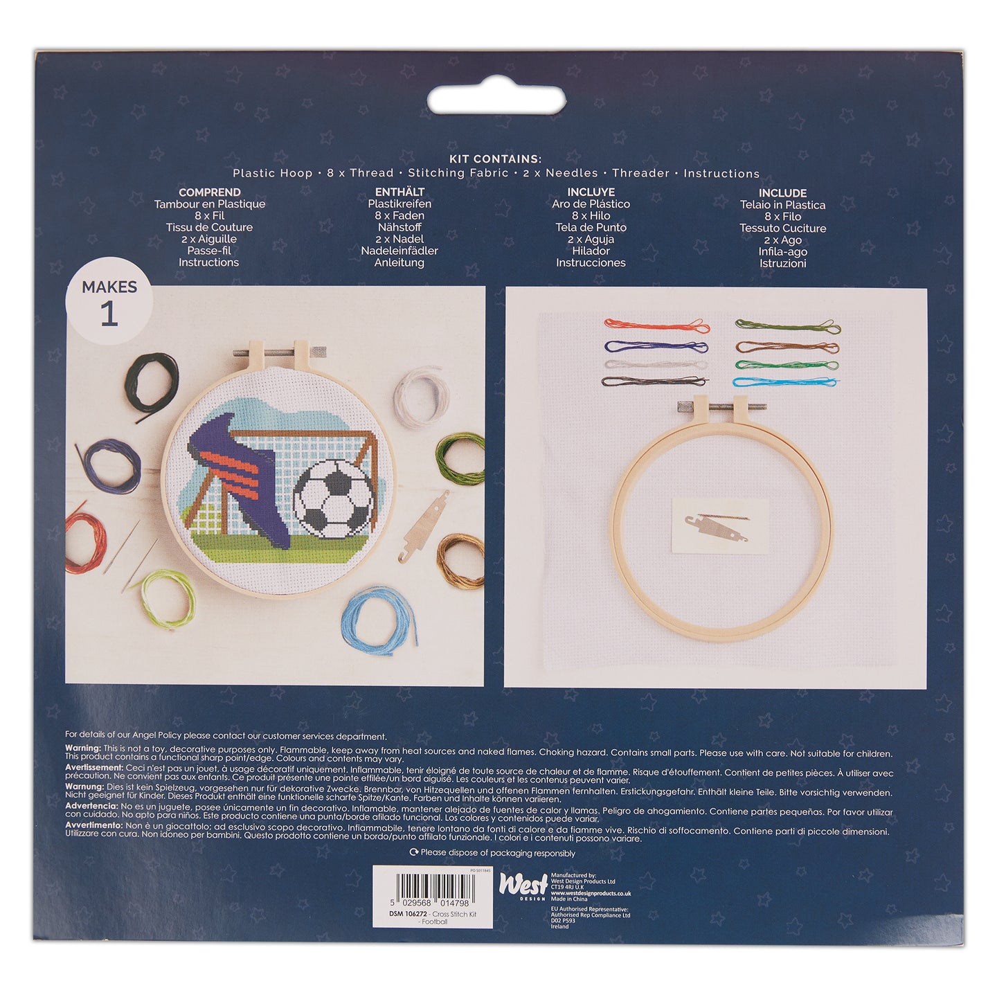 This kit contains everything that you need to create a great finished project in a Football. Includes instruction and cross stitch chart,200mm plastic hoop, up to 8 x threads,aida fabric, 2 x needles, and threader.