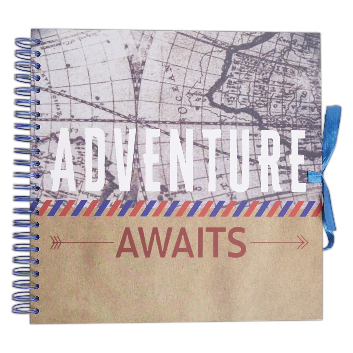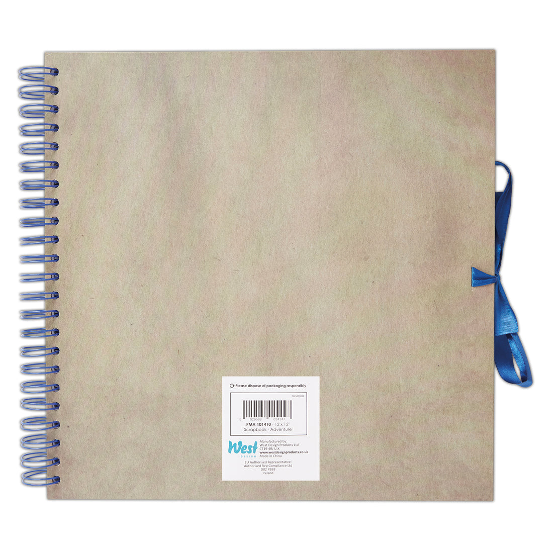Papermania Wiro Bound Hardback Scrapbook, 40 Pages, White Paper, Adevnture 12" x 12", Multicoloured, With Coordinating Ribbon Closure And Wire Colours