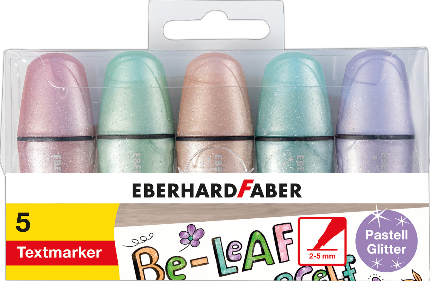 Eberhard Faber Mini Highlighters Glitter Pastel Colour, Box of 5, Coloured Pens, Marking, Document, Books, School, Work, University, Office, Teacher Student Supplies, Stationery Set, Party Bag Fillers