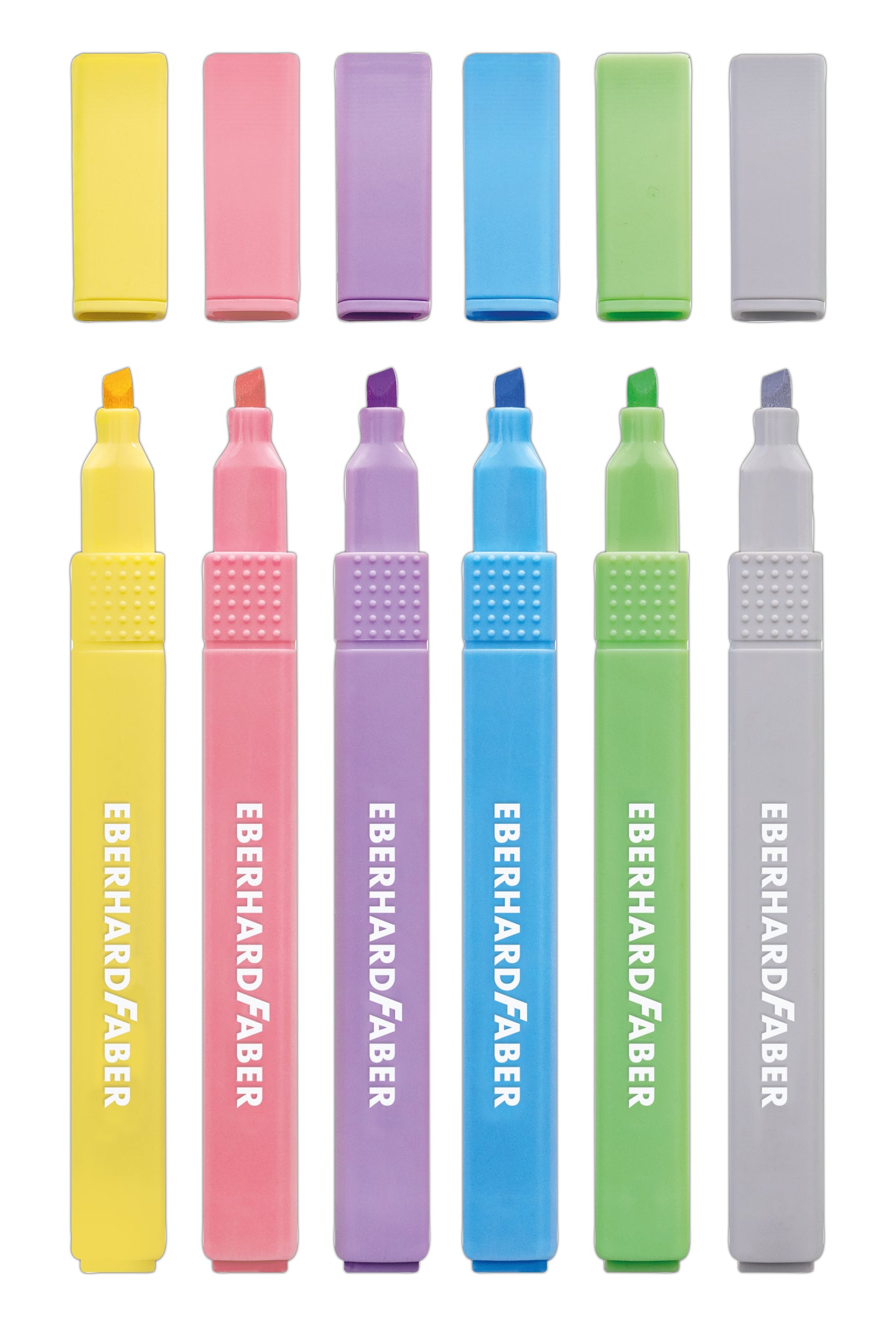 Eberhard Faber Slim Highlighters Pastel Shades Box Of 6 Coloured Pens, Marking, Document, Books, School, Work, University, Office, Teacher Student Supplies, Stationery Set, Party Bag Fillers