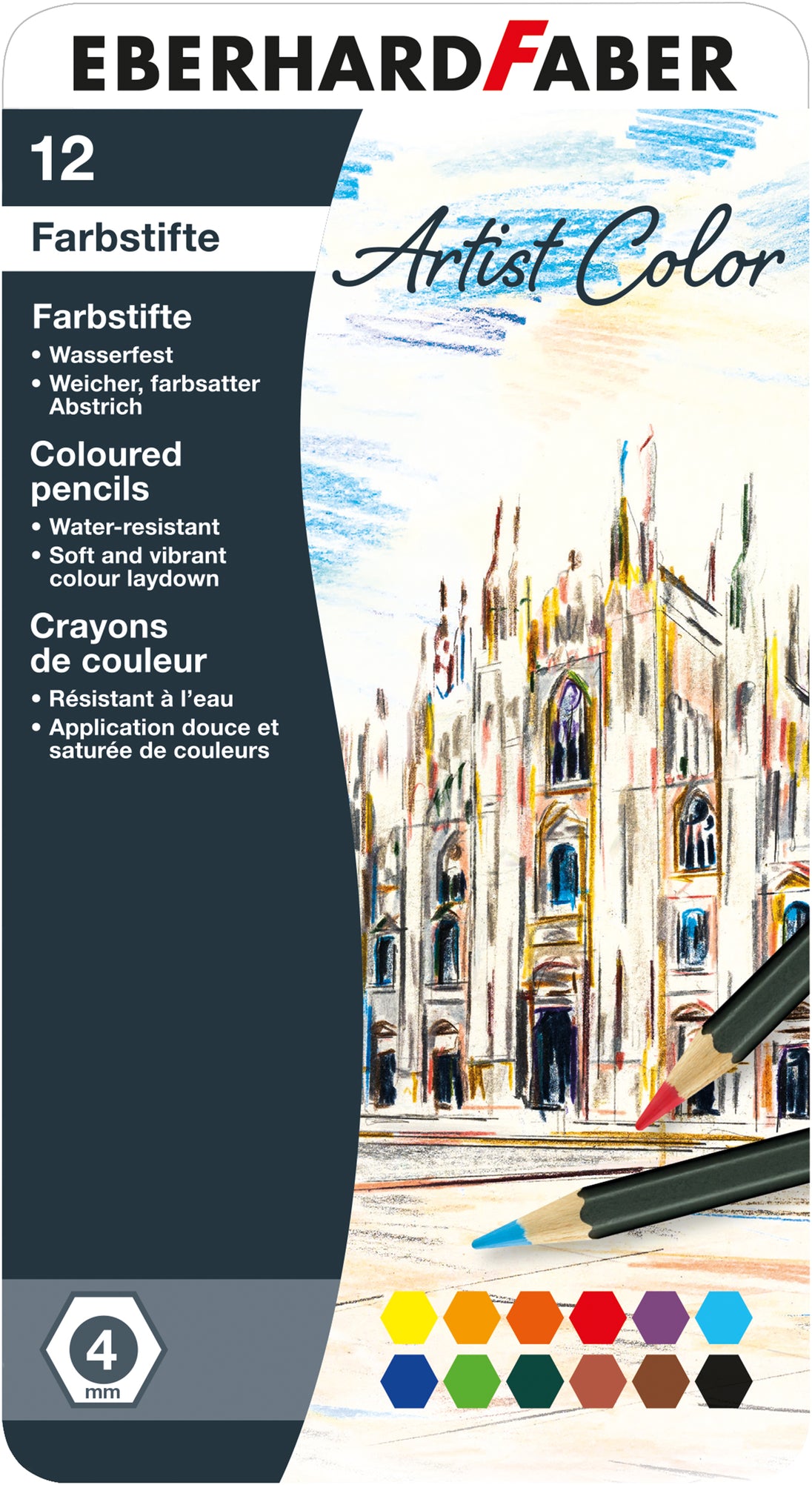 Eberhard Faber Artist Colour Pencils Tin Of 12, Stationery Supplies, Art, School, Artist Colouring Pencil Set, Soft Colour, Artist, Student Stationery Supplies, Drawing, Colouring, Water-Resistant