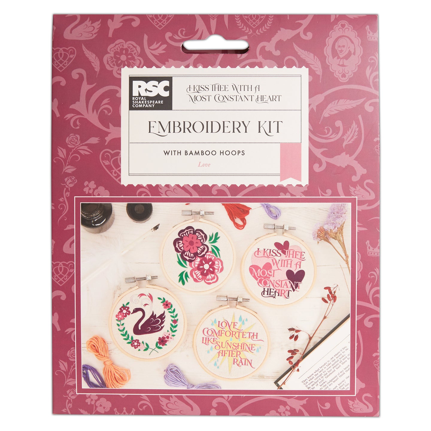 Royal Shakespeare Company Embroidery Hoop Decoration Kit 4 Piece Set, Love, Embroidery Set for Adults, Beginner Tapestry Stitch Kit With Patterns, Sewing Hobbies, Christmas Gifting, Crafts Accessories