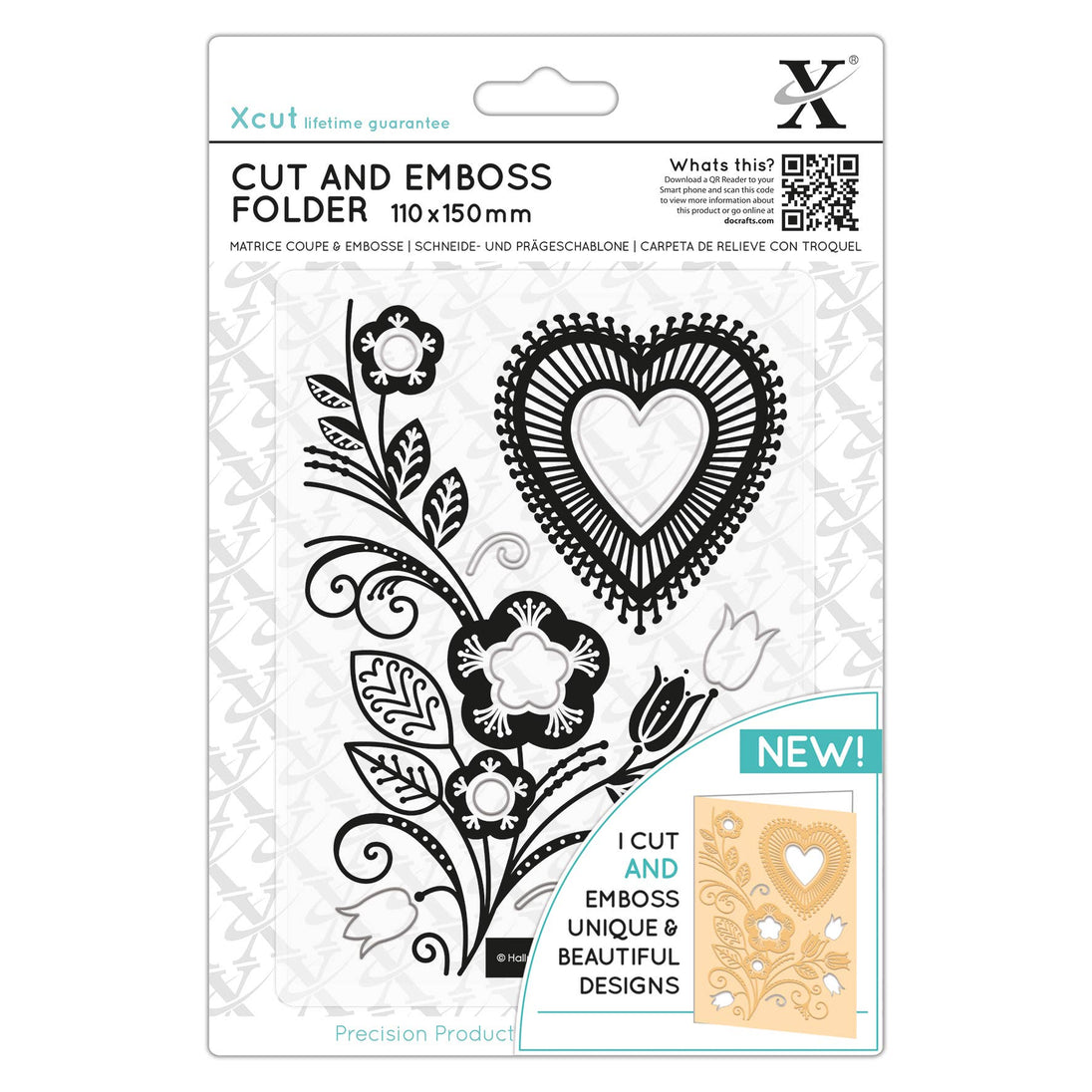 Xcut Cut & Emboss Folder, Folk Heart, White, 110 x 150mm, A Stencil that's ideal for Card Making and a Wedding Card, Decorate your Photo Album and Photo Paper with a DIY Project