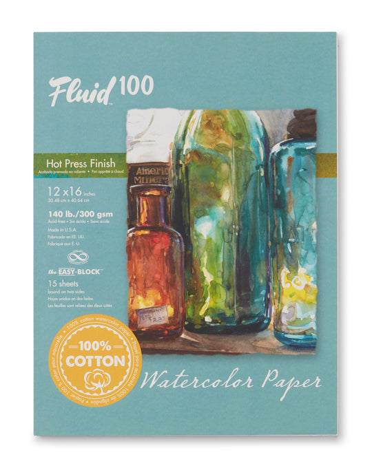 Speedball Fluid 100 Hot Press Watercolour Paper Block, White, 12 x 16inch