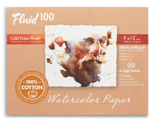 Speedball Fluid 100 Cold Press Watercolour Paper Block, White, 12 x 16inch