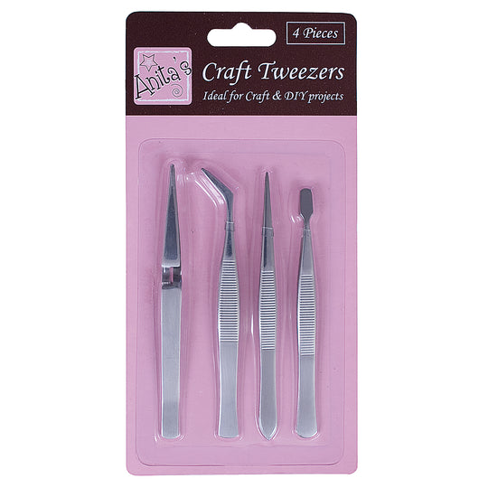 Anita's Craft Tweezer Set, Silver, 4 Pack