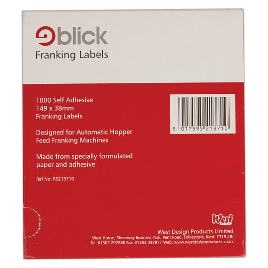 Blick Self Adhesive Stickers, 38mm x 149mm, Auto Feed Franking, Shipping, 1000 Labels