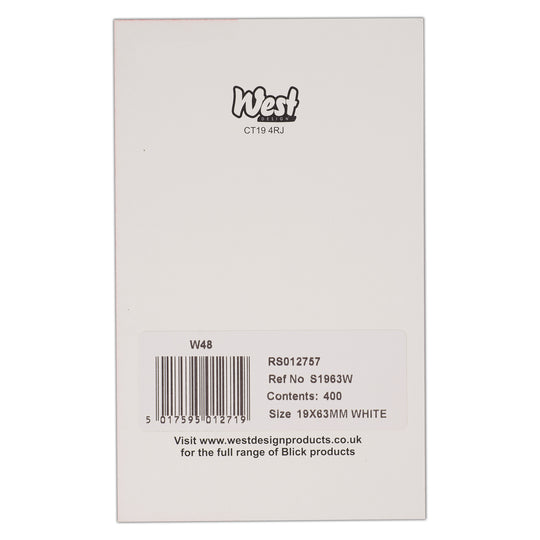 Blick Self Adhesive Stickers Office Pack, 19mm x 63mm, Rectangular, White, 400 Labels