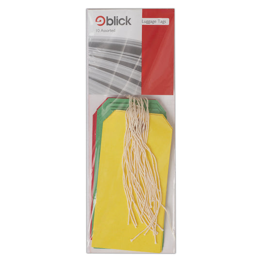 Blick Luggage Tags, 120mm x 60mm, Rectangular, Assorted (Yellow, Blue, Green, Orange), 10 Labels