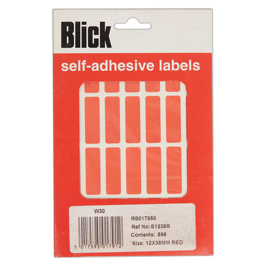 Blick Self Adhesive Stickers, 12mm x 38mm, Rectangular, Red, 896 Labels
