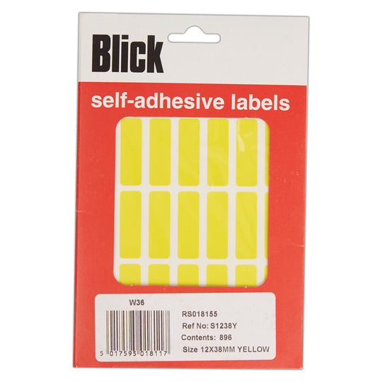 Blick Self Adhesive Stickers, 12mm x 38mm, Rectangular, Yellow, 896 Labels