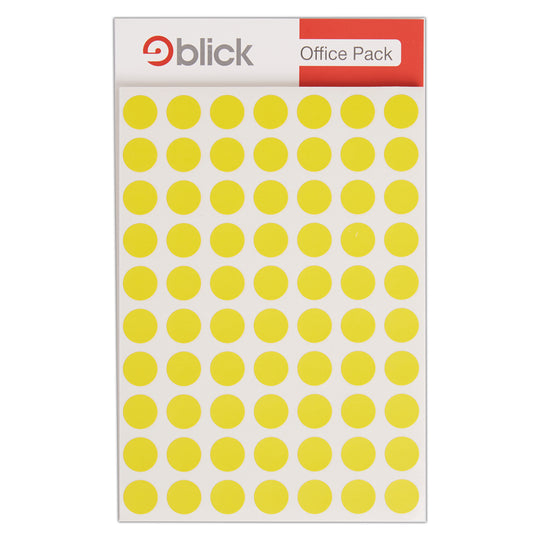 Blick Self Adhesive Stickers Office Pack, 13mm, Coloured Dot, Circles, Yellow, 2240 Labels