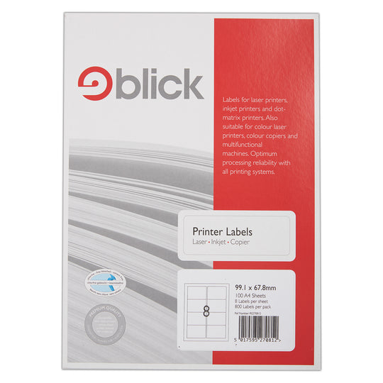 Blick Labels, White, 8 Per Sheet 100 Sheets, Rectangular, 99.1mm x 67.8mm, 500 Labels, For Home, Office, Family, School
