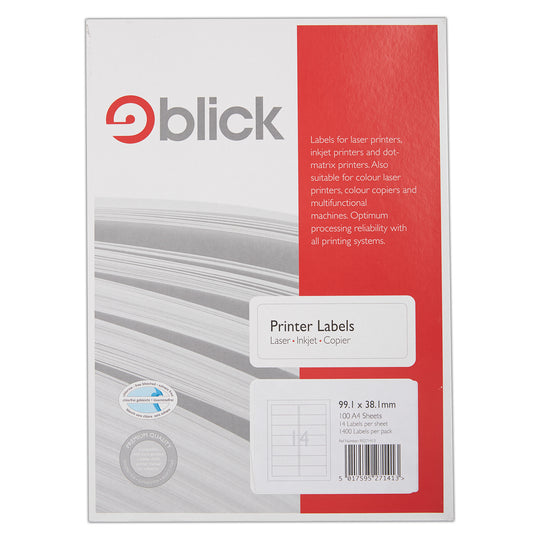 Blick Labels, White, 14 Per Sheet 100 Sheets, Rectangular, 99.1mm x 38.1mm, 1400 Labels, For Home, Office, Family, School