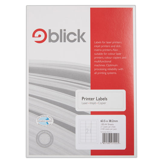 Blick Labels, White, 21 Per Sheet 100 Sheets, Rectangular, 63.5mm x 38.2mm, 2100 Labels, For Home, Office, Family, School