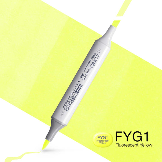 COPIC Sketch Coloured Marker Pen - (FYG-1) Fluorescent Yellow, For Art & Crafts, Colouring, Graphics, Highlighter, Design, Anime, Professional & Beginners, Art Supplies & Colouring Books