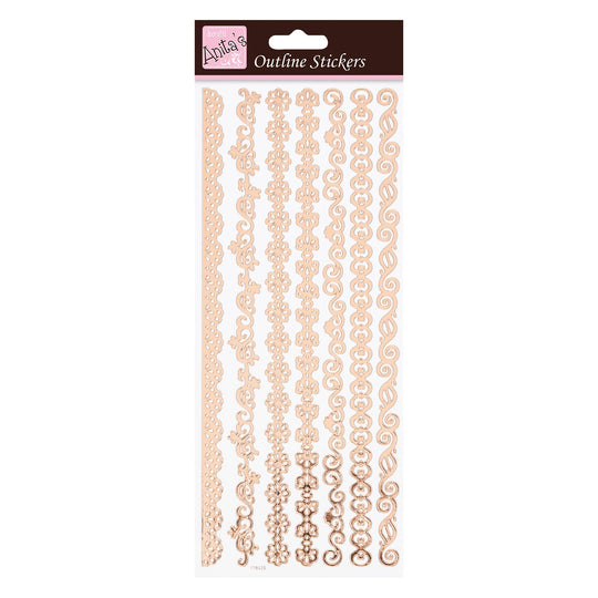 Anita's Outline Stickers, Borders, Rose Gold On White, For Scrapbooking, Card Making, Kids Play, Homework, Art, Craft, Embelish, Decorative, Paper, Card, Glass, Metal, Plastic, Foam