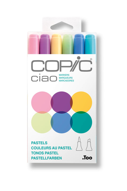 COPIC Ciao Coloured Marker Pen - Set of 6 Pastel, For Art & Crafts, Colouring, Graphics, Highlighter, Design, Anime, Professional & Beginners, Art Supplies & Colouring Books