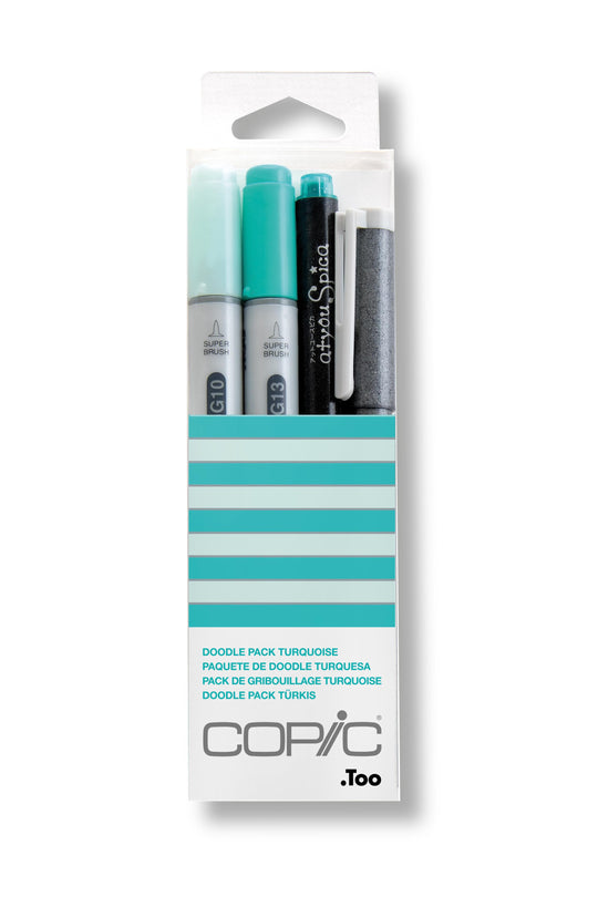 COPIC Ciao Coloured Marker Pen - Doodle Pack of 4 Turquoise , For Art & Crafts, Colouring, Graphics, Highlighter, Design, Anime, Professional & Beginners, Art Supplies & Colouring Books