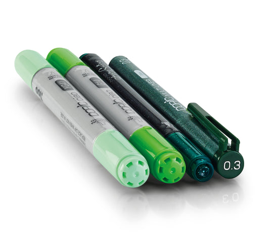 COPIC Ciao Coloured Marker Pen - Doodle Pack of 4 Green, For Art & Crafts, Colouring, Graphics, Highlighter, Design, Anime, Professional & Beginners, Art Supplies & Colouring Books