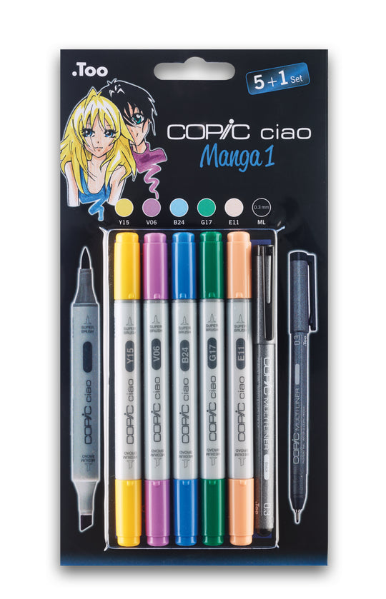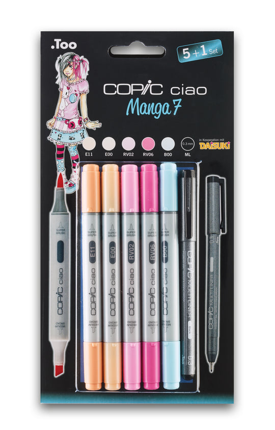 COPIC Ciao Coloured Marker Pen - 5+1 Set Manga 7, For Art & Crafts, Colouring, Graphics, Highlighter, Design, Anime, Professional & Beginners, Art Supplies & Colouring Books