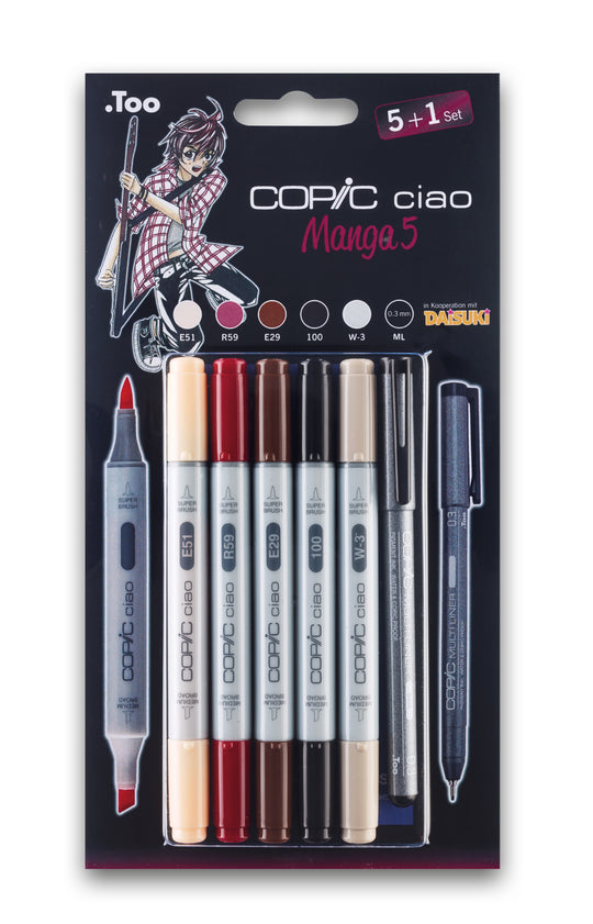COPIC Ciao Coloured Marker Pen - 5+1 Set Manga 5, For Art & Crafts, Colouring, Graphics, Highlighter, Design, Anime, Professional & Beginners, Art Supplies & Colouring Books