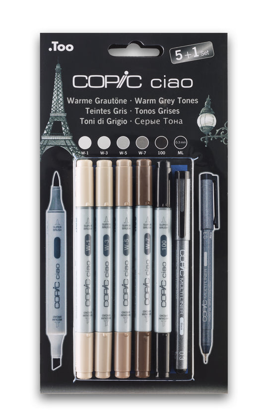 COPIC Ciao Coloured Marker Pen - 5+1 Set Warm Grey , For Art & Crafts, Colouring, Graphics, Highlighter, Design, Anime, Professional & Beginners, Art Supplies & Colouring Books